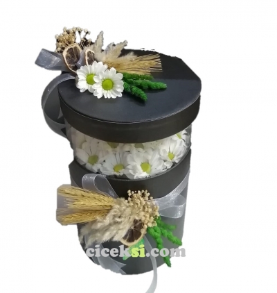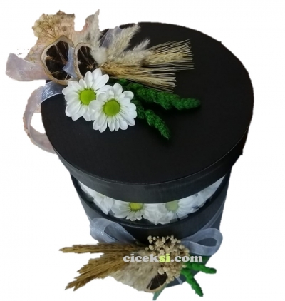 Ürün Kodu: DC143Papatyalar ve Kuru Çiçekler ile hazırlanmış Özel Kutu Tasarımı.