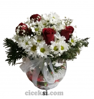 Ürün Kodu: DC89Cam Fanus Gül ve Papatya