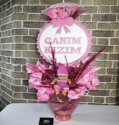 Kalp Cam İçerisinde Et Bebek Canım Kızım Yazılı Stiker Şemsiyeli Model