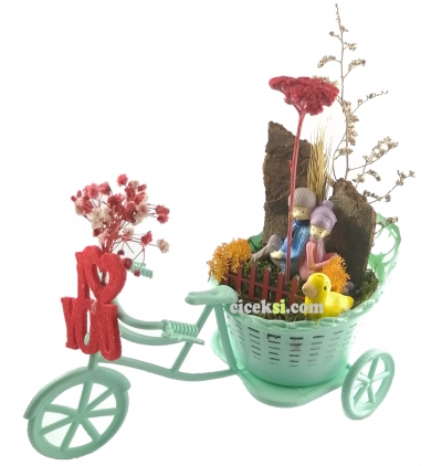 Ürün Kodu: DC193Bisiklet Ölçüleri Uzunluk 22 Cm Yükseklik 10 Cm Zemin Kaya Yosunu Üzerinde Sırt Sırta Yaslanmış Çift Figürü ,Kuş Figürü , Çit Mos Yosun Ağaç Kabuğu Kuru Çiçekler Ön Kısmında Lowe Yazısı