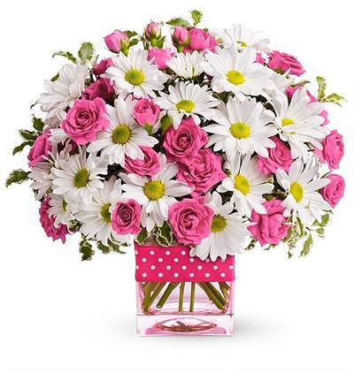 Vazoda Pembe Gül ve Papatya